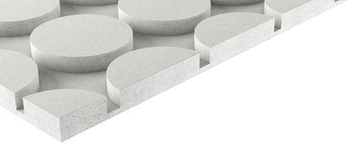 Een vernieuwde benadering van vloerverwarming staat voor je klaar met fermacell® Therm25TM vloerverwarmingselementen. Deze geavanceerde elementen zijn ontworpen als droge dekvloer met ingebouwde buisgeleiders voor zowel vloerverwarming als -koeling binnenshuis. De Therm25TM elementen bestaan uit een stevige fermacell® gipsvezelplaat met een dikte van 25 mm, waarvan het oppervlak is bewerkt in een speciaal patroon. Hierdoor wordt de montage van de elementen en de daaropvolgende installatie van de vloerverwarmingsbuizen vereenvoudigd. De sleufafstand = 167mm