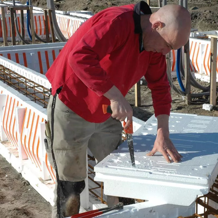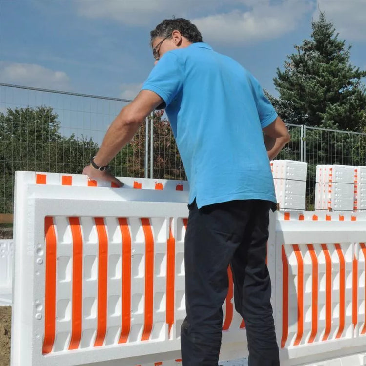 De Isobouw Powerkist Zijwand vormt de zijkant van de Isobouw Powerkist. Deze wand is voorzien van geïntegreerde PS-wapening, waardoor het bestand is tegen hoge betonbelastingen, zonder dat onderbeugels of zandaanvulling nodig zijn. Daarnaast heeft het een messing-groefaansluiting, wat voorkomt dat beton of water weg lekt. De taps toelopende uitsparingen zorgen voor betere hechting van het beton, waardoor scheuren en luchtbellen worden voorkomen. Voor hoeken hoef je niet te zagen of aparte onderdelen te gebruiken; door de verwijderbare afritsstrook weg te nemen, creëer je eenvoudig T-stukken of hoekstukken. Hierdoor heb je geen extra onderdelen nodig. Deze zijwand is licht van gewicht en eenvoudig te plaatsen.