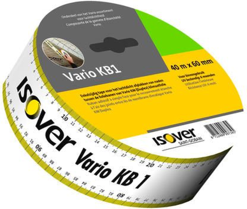 Isover Vario KB1 is een enkelzijdige tape met een zeer hoge kleefkracht. Met deze tape kunt u naden en overlappen luchtdicht afplakken in combinatie met de klimaatfolie van Isover Vario KM Duplex UV.