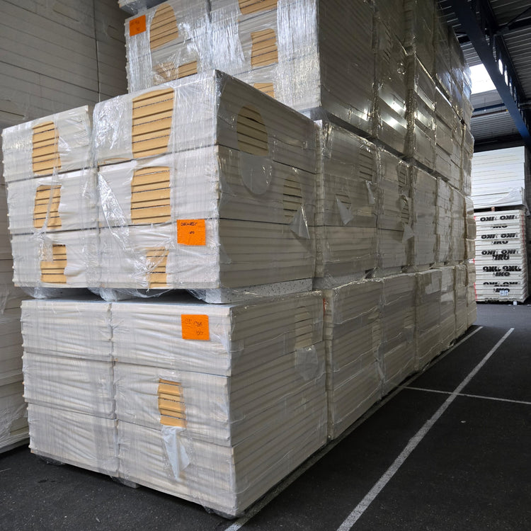 Platen zijn aan beide zijde bekleed met aluminium folie. Betreft een zeer nette partij in B-keus.