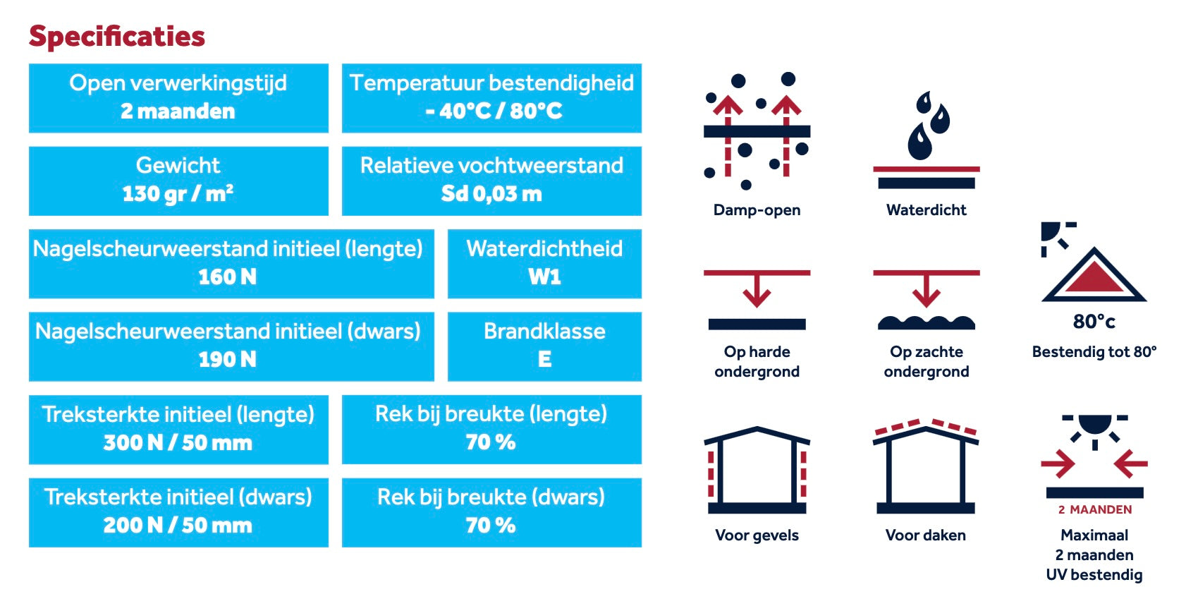 - Hoge treksterkte en rek bij breuk