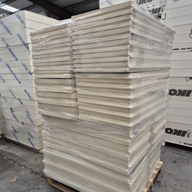 Afmetingen plaat: 1200x600mm ( 5 pak 140mm = 10.8 m2 + 3 pak 80mm = 12.96 m2 )