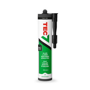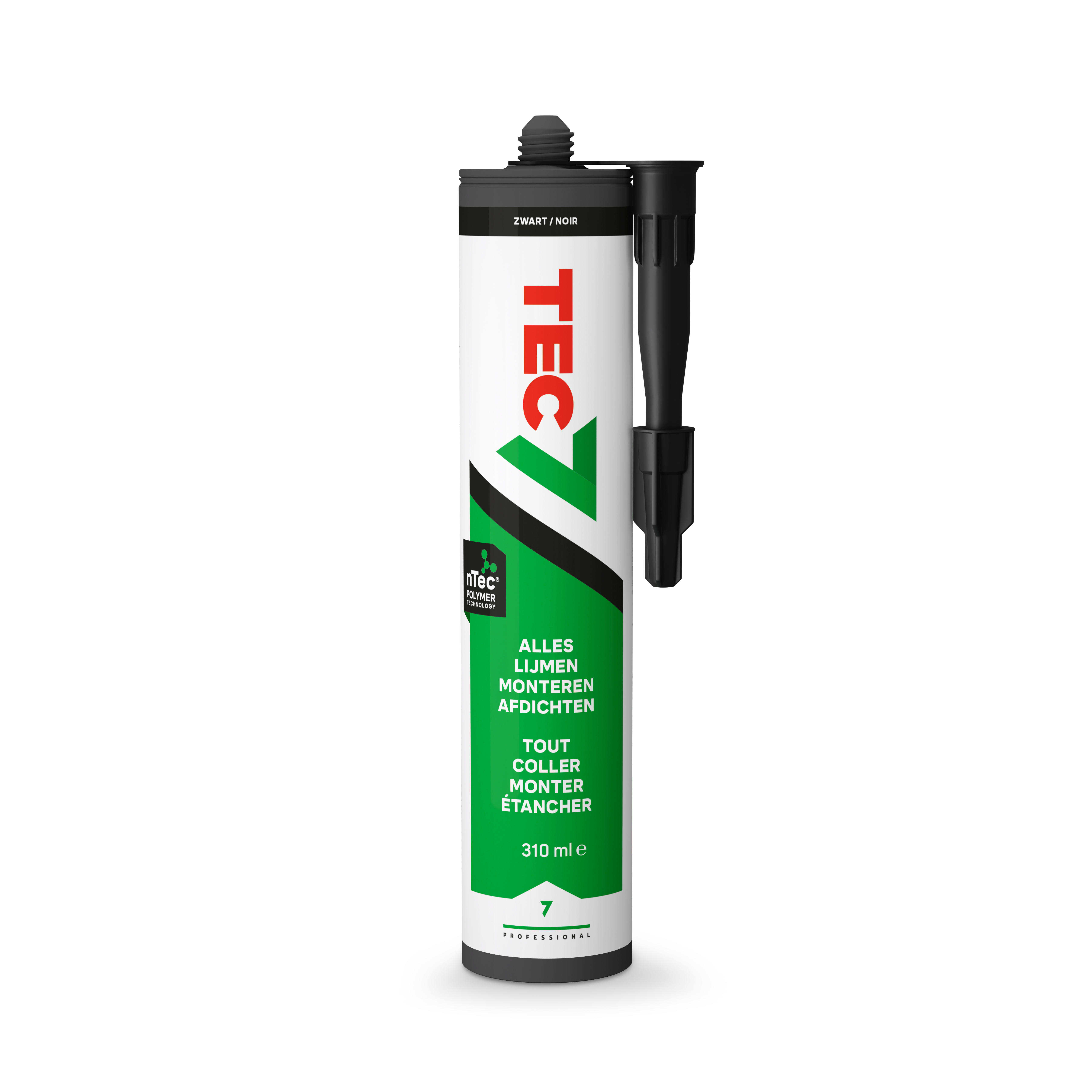 Voor alle toepassingen in de bouwwereld, sanitaire wereld en algemeen onderhoud. Tec7 vervangt montagelijm, houtlijm, PU-lijm, siliconenkit, sanitair-siliconenkit, acrylaatkit, butyleenkit. Tec7 hecht op de meeste ondergronden en tast geen kunststoffen aan. Op spiegels (verticale lijmbanen), op natuursteen (bloedt niet door), op polyester, op piepschuim, op vochtige ondergrond, zelfs onder water.