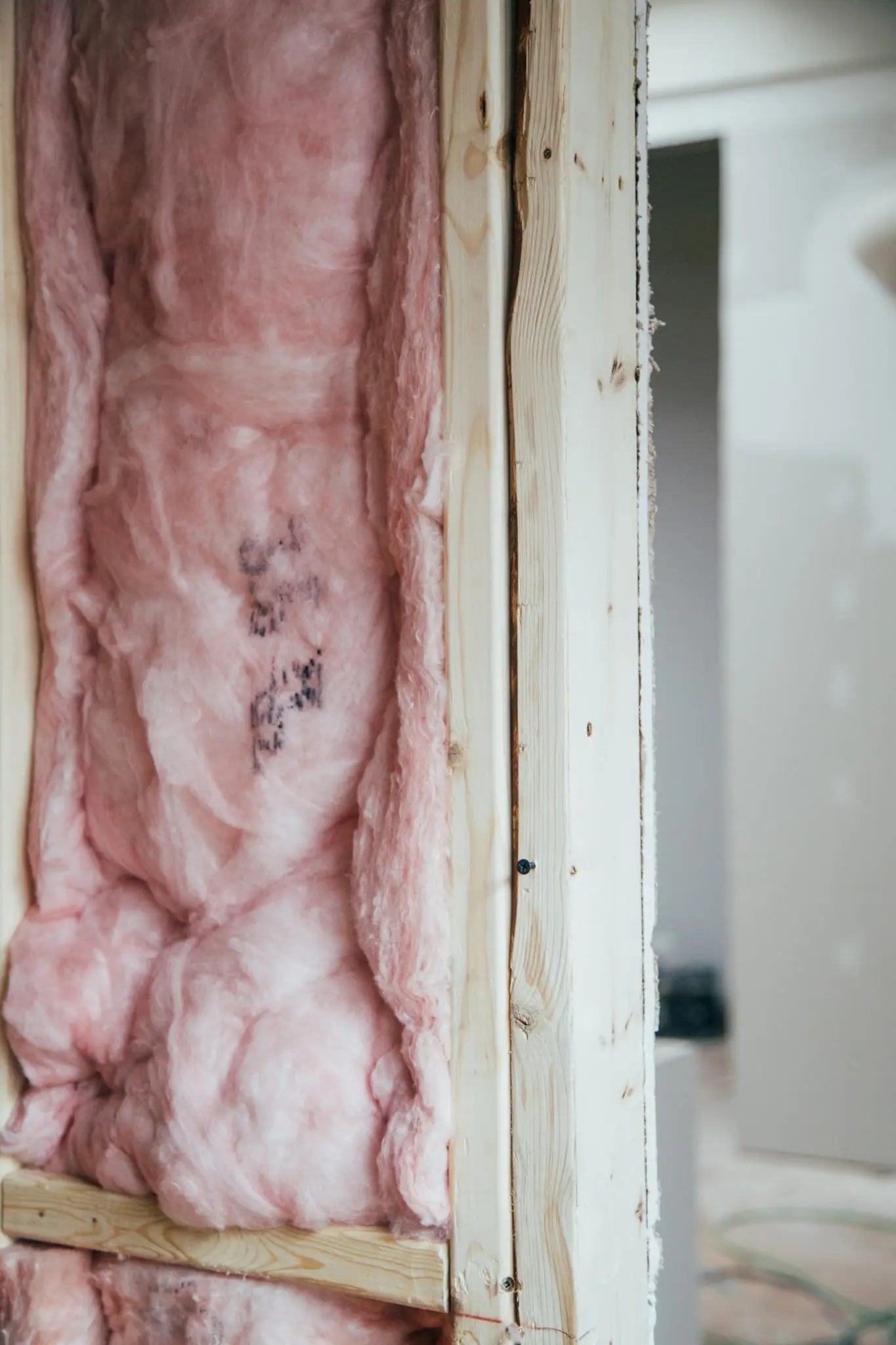 Voor het isoleren van een enkelsteens buitenmuur bouwt men vaak een raamwerk van houten balken, waartussen het isolatiemateriaal geplaatst wordt.